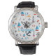 Uhr, Vintage Männeruhr mit schwarzem Lederarmband