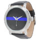 Die Armbanduhr dieser Männer hat die Thin Blue Line, um Unterstützung für die Strafverfolgung zu zeigen.