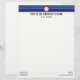 Three lines in different shades of blue make a sharp and professional banner at the top of this eye-catching letterhead stationery. There is space in the blue lines for your logo.