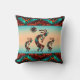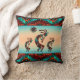 Dies ist ein einzigartiges "One of a Kind" Südwest Kokopelli Krötenkissen! Drei südwestliche Kokopelli spielen Flute und tanzen unter der Sonne auf einem türkisfarbenen und orangen Sonnenuntergang ...umgeben von einer Südwestgrenze in Türkis , Orange und Schwarz!