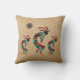 Dies ist ein einzigartiges "One of a Kind" Südwest Kokopelli Krötenkissen! Es hat drei südwestliche Kokopelli in Türkis, Schwarz und Orange Tanz und das Spiel der Flute unter der Sonne auf einem Tan Leder Hintergrund! Dies ist ein Original Art Design von Künstler Kerry Miller.