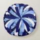 Dieses lustige Kissen zum Feiern Ihres Status wird in runder Größe mit einem lustigen Pom-Druck auf der Vorderseite gezeigt. Mehrfarbigkeit. Das Bild ist auf der Vorderseite und auf der Rückseite solide. Passen Sie dieses Element mit dieser Vorlage an oder kaufen Sie es wie gezeigt. Blues und Weiß dominieren.