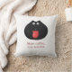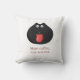 Kissen mit niedlichem und lustigem Druck mit Katz und Kaffee und "mehr Kaffee, weniger Sorgen" Text.