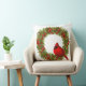 Dieses Kissen mit Akzent wird in einem festlichen Weihnachtsberry-Kranz und einem roten Kardinal-Vogeldesign gezeigt. Color White Passen Sie dieses Objekt an oder kaufen Sie, wie es ist.