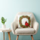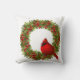 Dieses Kissen mit Akzent wird in einem festlichen Weihnachtsberry-Kranz und einem roten Kardinal-Vogeldesign gezeigt. Color White Passen Sie dieses Objekt an oder kaufen Sie, wie es ist.