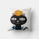 Throw Pillow Black Cat Fishbones Kissen