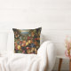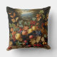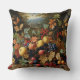This throw pillow is covered with the image of autumn leaves, red and purple berries, and golden apples.