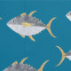 Thunfisch macht Spaß an aquamarinen, grünen Küstenschiffen. Originelle Kunst von Nic Squirrell.