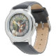Uhr, Vintage Männeruhr mit schwarzem Lederarmband