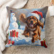 Tibetischer Spanier, der mit Weihnachtshut in Schn Kissen