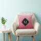 Tief rosa Wasserfarbe mit Schwarz-Gold-Monogramm Kissen