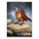 Tier-Kunst: Carolina-Zaunkönig auf Felsen: Pastell