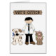 Fantastisches Design für einen Tierarzt, ein Tierarzt - der seinen weißen Mantel trägt - wird von einem Hund und einer Katze flankiert, mit einem Schild oben, auf dem steht: "Veterinäramt".
