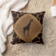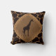 Giraffen-Silhouette auf einem themed Quadrat der Safari über einem Tierdruckhintergrund in den Schatten von dunklem schokoladenbraunem und tan.