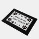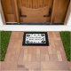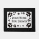 Katzen- und Hundetatzendrucke schmücken diese Schwarzweiss-Türmatte, zusammen mit dieser humorvollen Aussage.