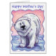 Niedliche Polar Bären Art Muttertagskarte erstellt von Imagine That! Das Design zeigt unsere originelle Kalkkunst von Traci Van Wagoner eines lustigen, weißen Eisbären, stehend in einer schneebedeckten Landschaft mit einem sonnenaufgang rosa Himmel und einer spielerischen, welligen lila Grenze. Innen ist eine anpassbare Nachricht, die lautet: Hier ist ein BEAR HUG für Ihren besonderen Tag! mit dem Eisbär in der unteren rechten Ecke. Auf der Kartenrückseite ist der Hintern des humorvollen Eisbären. Diese niedliche weiße Bärenkarte ist eine großartige Möglichkeit für alle Liebhaber von Meeresbären, Eisbärenliebhabern und Wildtierliebhabern, ihrer Mutter einen schönen Muttertag zu wünschen. Bringen Sie ihr ein Lächeln ins Gesicht und vergessen Sie nicht, ihr einen Bärenumarmen zu geben, um ihr zu zeigen, wie sehr Sie sie Liebe haben.