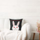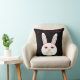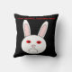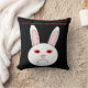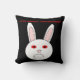 Dieses phantastische Kissen zeigt das traurige Gesicht eines weißen Kaninchens. Dieses Kaninchen hat einen großen Frosch auf dem Gesicht, weil es ein Labrador-Kaninchen ist, auf dem Kosmetika getestet wurden. Die weißen Augen sind rot und geschwollen. Das Design wurde entwickelt, um das unnötige Leid, das durch die Untersuchung von Kosmetika an Tieren entsteht, in den Blick zu rücken. Der fette rote Text lautet "Stoppt Tierversuche jetzt!"