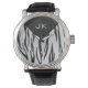 Stilvolle und trendige Black and White Tiger Striped Animal Print Vintag Leather Wrist Watch erstellt von Imagine That! Design mit unserer einzigartigen Touch von Textur und Pizzas wird bestimmt den Bedürfnissen von Tigerliebhabern aller Altersgruppen gerecht. Mit ITD Wild Me Tiger Streifen in einem auffälligen Schwarz-Weiß-Muster.