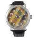 Tigeraugen Gemstone mit glänzenden Schichten von rediesbraunen und goldenen Honigfarben. Vintager Typ Schriftart in Weiß, kann gelöscht werden, um den Tigers Eye-Hintergrund für die anderen Uhrenstile zu verwenden. ❀ Probieren Sie unsere anderen Geschäfte auf Zazzle aus: