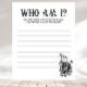 Dieses Spiel "Who Am I" ist Teil der Til Death Do Us Part Kollektion und der perfekte Eisbrecher bei Ihrer nächsten Brautdusche oder Paardusche. Super einfach - folgen Sie einfach den Anweisungen: Schreiben Sie eine Erinnerung mit den Ehrengästen auf und wenn sie nicht erraten können, dass es Sie waren - Sie gewinnen. Sie, der Gastgeber, werden die Zeit wählen, die den Gästen zum Spielen zugeteilt wird. Der gesamte Text ist individuell an die Details Ihres Ereignisses angepasst ↣ klicken Sie einfach auf den Button "Personalisieren".