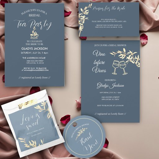 Timeless Floral Symphony in Blue Brautparty Einladung