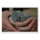 Winziges Baby Blue Kitten, das in Händen gekrackt wird.