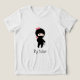 Niedliche Cartoon Ninja Mädchen ist ganz in Schwarz gekleidet, aber für einen rosa Bogen auf ihrer Kopfmaske. Traditionelles japanisches Schwert Katana kann man an ihrer Schulter sehen, es ist Griff auch rosa gefärbt.