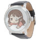 Uhr, Vintage Männeruhr mit schwarzem Lederarmband