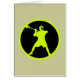 Verschlossen, gespannt und bereiten Sie vor, um zu schaukeln. Silhouette des Lacrossespielers inmitten des Abfeuerns eines Schusses auf Ziel. Kreisemblementwurf im Schwarzem und Neongrün.