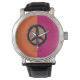 Uhr, Vintage Männeruhr mit schwarzem Lederarmband