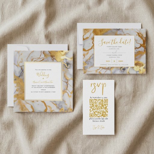 White and gold marble wedding suppliesDesignt von Andy O'Dell