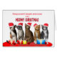 Eine lustige und niedliche Weihnachtskarte mit 5 hintereinander sitzenden Katzen, die Weihnachtsmannmützen tragen. Die Worte Meowy Weihnachten sind über den Katzen.Jeder Katzenliebhaber wird das Liebe! Eine Weihnachtskarte für Ihre Tochter und Ihren Ehemann.