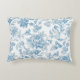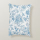 Elevate your bedding with our new accent throw pillow design featuring an elegant Toile-de-Jouy Chinoiseries blue floral pattern, against a custom white background.