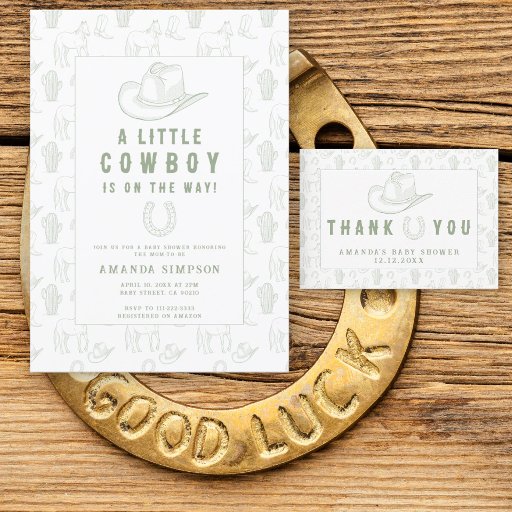 Toile de Jouy Green Cowboy Western Baby ShowerDesignt von Valentina Kashirskaia