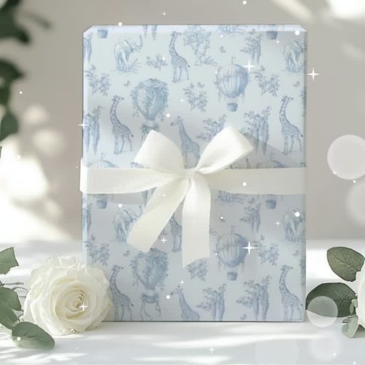 Toile Safari Tiere Blue Hot Air Ballons Wrapping Papier Matching Artikel sind verfügbar.