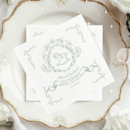 Toile de Jouy Sage green Rocking Horse Baby ShowerDesignt von Julia J