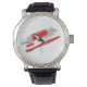 Uhr, Vintage Männeruhr mit schwarzem Lederarmband
