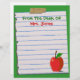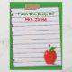 Top 10 Letterheads Views Zazzle Award! Personalisieren Sie diesen individuellen Briefkopf "From The Desk Of" mit jedem Namen auf diesem lustigen, zerrissenen, gepolsterten Notizbuch-Papier, das auf einen grünen Hintergrund geklebt ist, mit einer roten Apfelgrafik unten. Oder einfach nur den Text komplett verlassen. Ändern Sie die Hintergrundfarbe, den Textstil und die Farbe. Klicken Sie einfach auf "Anpassen" und dann auf "Bearbeiten" und "Hintergrund", um die Farbe zu ändern. Macht ein großartiges Geschenk für Lehrer. Personalisieren Sie einige heute!