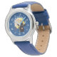 Kinderuhr aus Edelstahl mit blauem Lederarmband