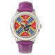 Uhr, Kinderuhr aus Edelstahluhr mit lila Lederarmband