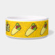 Cartoon Illustration der Tortilla Sandwich-Wrap. Junk Food Kontur Icons Gelbe Muster Hintergrund. Eigener Text.