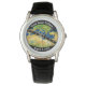 Uhr, Vintage Männeruhr mit schwarzem Lederarmband