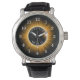 Uhr, Vintage Männeruhr mit schwarzem Lederarmband