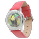 Uhr, Kinderuhr aus Edelstahl mit rosa Lederarmband
