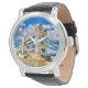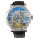 Uhr, Vintage Männeruhr mit schwarzem Lederarmband