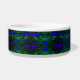 Na imagem, as formas azuis parecem flutuar sobre um tipo de espaço esverdeado ou emaranhado de traços verdes claro e verde escuro.