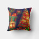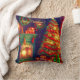 Dieses Throw Kissen verfügt über einen traditionell weihnachtlich eingerichteten Raum mit Weihnachtsbaum, Kamin, Geschenken und vielen schönen Details in den klassischen Farben Grün, Rot und Gold. Wunderschöne Dekoration für die romantische Weihnachtszeit, auch ein großes Geschenk! Entworfen mit KI basierend auf meiner Idee.