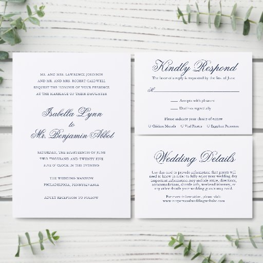 Navy Blue Traditional Wedding Invitation SetDesignt von Cynthia Rinne