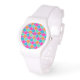 Eine schicke White Sporty Wrist Watch mit einem traditionellen islamischen Muster in hellrosa, orange, türkisblau und hellgrün, in Weiß umrissen; aus der Posh & Painterly 'Islamic' Kollektion kann dieses Muster leicht an jede Armbanduhr angepasst werden.