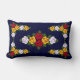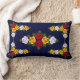 Ein Kissen mit den roten, gelben und weißen Rosen der Volkskunst-Art, die traditionsgemäß auf britischen Kanal narrowboats gemalt wurden, hier auf einem dunkelblauen Hintergrund, der zu einer anderen Farbe geändert werden kann.